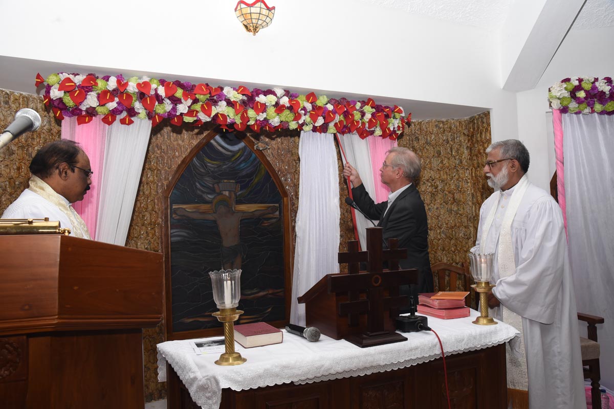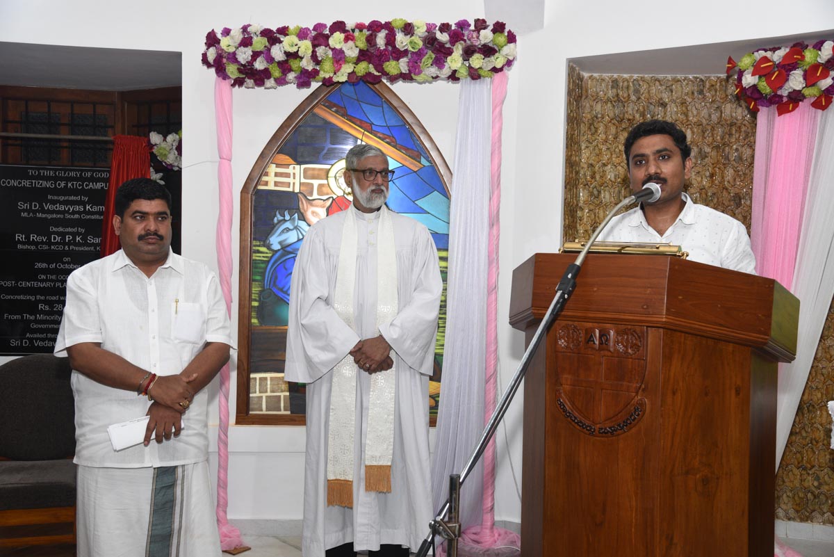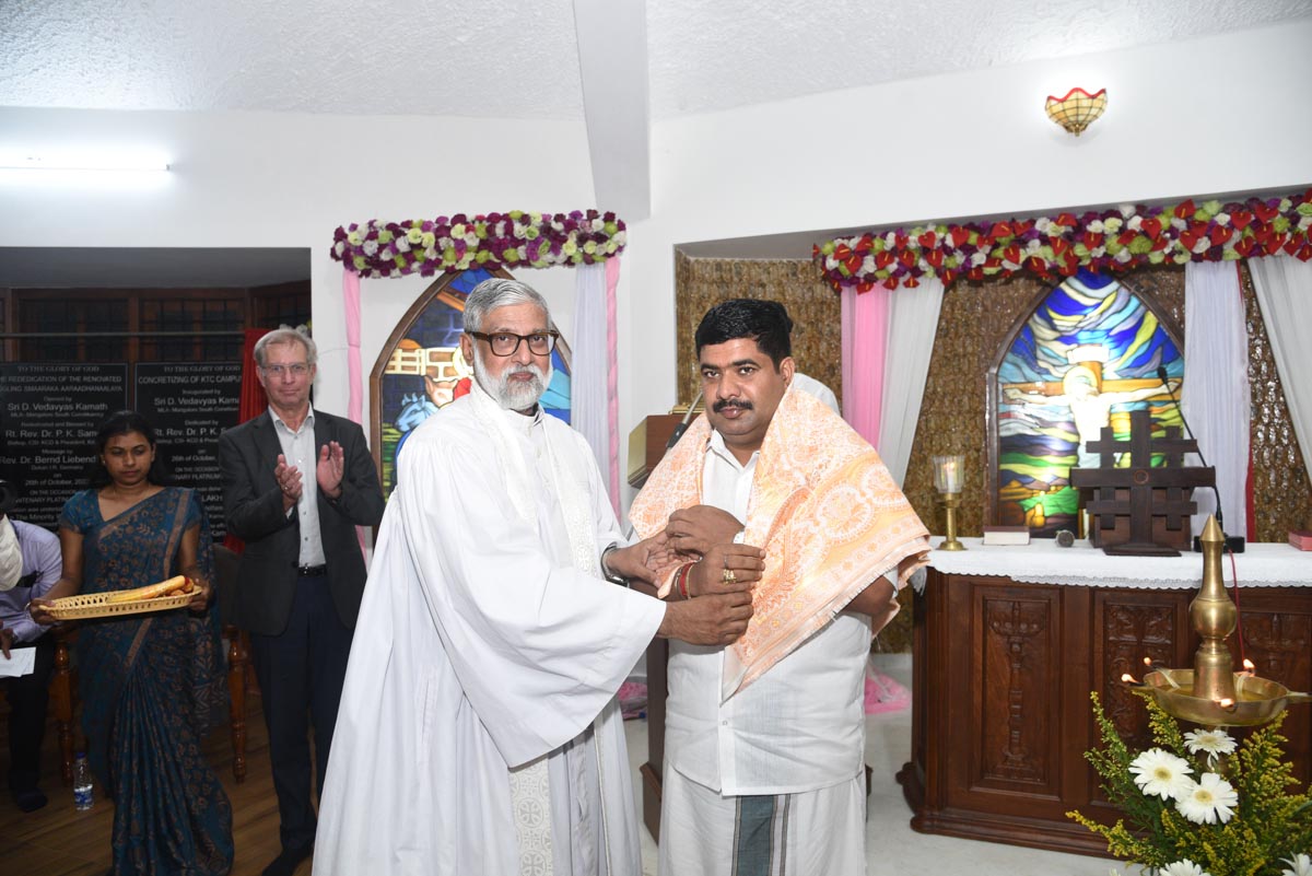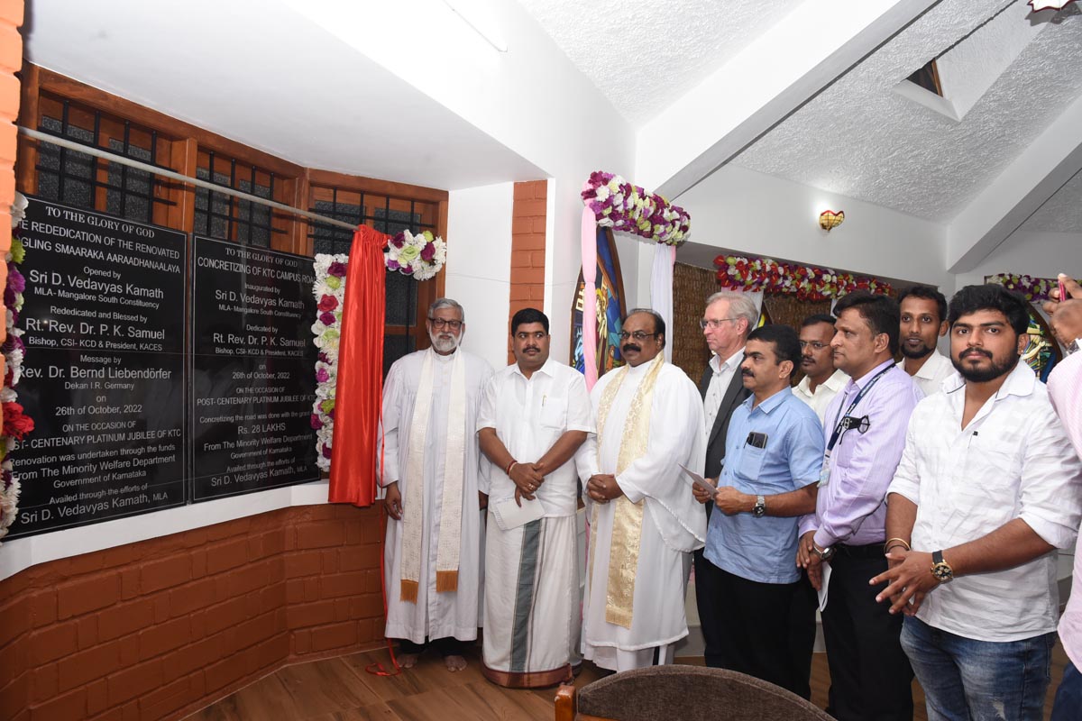 The renovated chapel of the College was inaugurated and rededicated on 26th October 2022. The local MLA Sri Vedavyas Kamath inaugurated the renovated Chapel and the newly constructed concrete road in the Campus. Rev. Vincent Vinodkumar representing Rt. Rev. P.K. Samuel, Bishop CSI-KCD and President KACES rededicated the Chapel. Rev. Dr. Bernd Liebendoerfer, Dekan I.R., Germany gave the message. Sri Naveen D’Souza, local Corporator and Sri Manjunath, Minority Extension Officer were the Guests of Honour. Rev. Dr. H.M. Watson, the Principal of the College led the worship service. The renovation was taken up as a part of the Post Centenary Platinum Jubilee. The project was carried out with the funds from the minority department of the government of Karnataka availed through the efforts of the local MLA Sri Vedavyas Kamath.