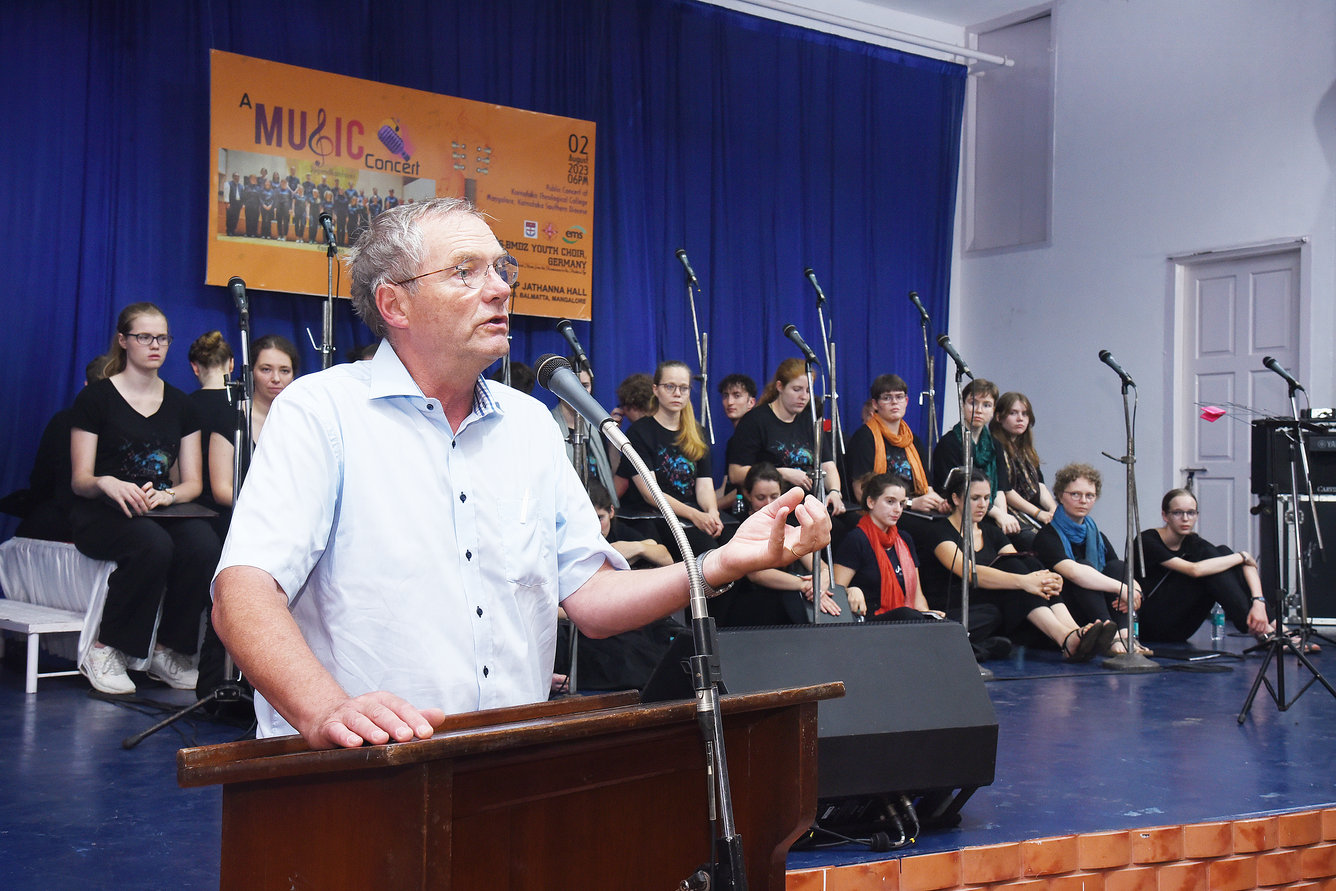 The concert began with a prayer led by Rev M Praburaj, presbyter CSI Shanthi Cathedral. Rev. Dr F Anil Kumar, treasurer KTC welcomed the gathering. Rev. Dr Solomon Benjamin EMS liaison officer for East Asia Mission, led the youth team introduced the choir group. The concert was directed by a well known director Mr. Uwe Schüssler. The President of the German part of Basel Mission Rev. Dieter Bullard Werner and his wife Rev. Nancy Bullard Werner had accompanied the group. The youth group from Esslingen sang classical concerts and contemporary songs which included compositions of Johan Sebastian Bach, Dietrich Buxtehude, Felix Mendelssohn Bartholdy and others. Rev. Dr J B Saldhana, PRO of the Roman Catholic Mangalore Diocese and the Parish Priest St. Francis Xavier Church, Bejai and Rt Rev. Hemachandra Kumar, Bishop CSI-KSD shared greetings on this occasion. Rev. Dr H M Watson delivered his presidential address. Christian Music lovers from all denominations from Mangalore and Udupi districts attended the programme and gave a thunderous standing ovation to the incredibly talented youth choir. The programme was compered by Rev. Dr Sandeep Theophil.