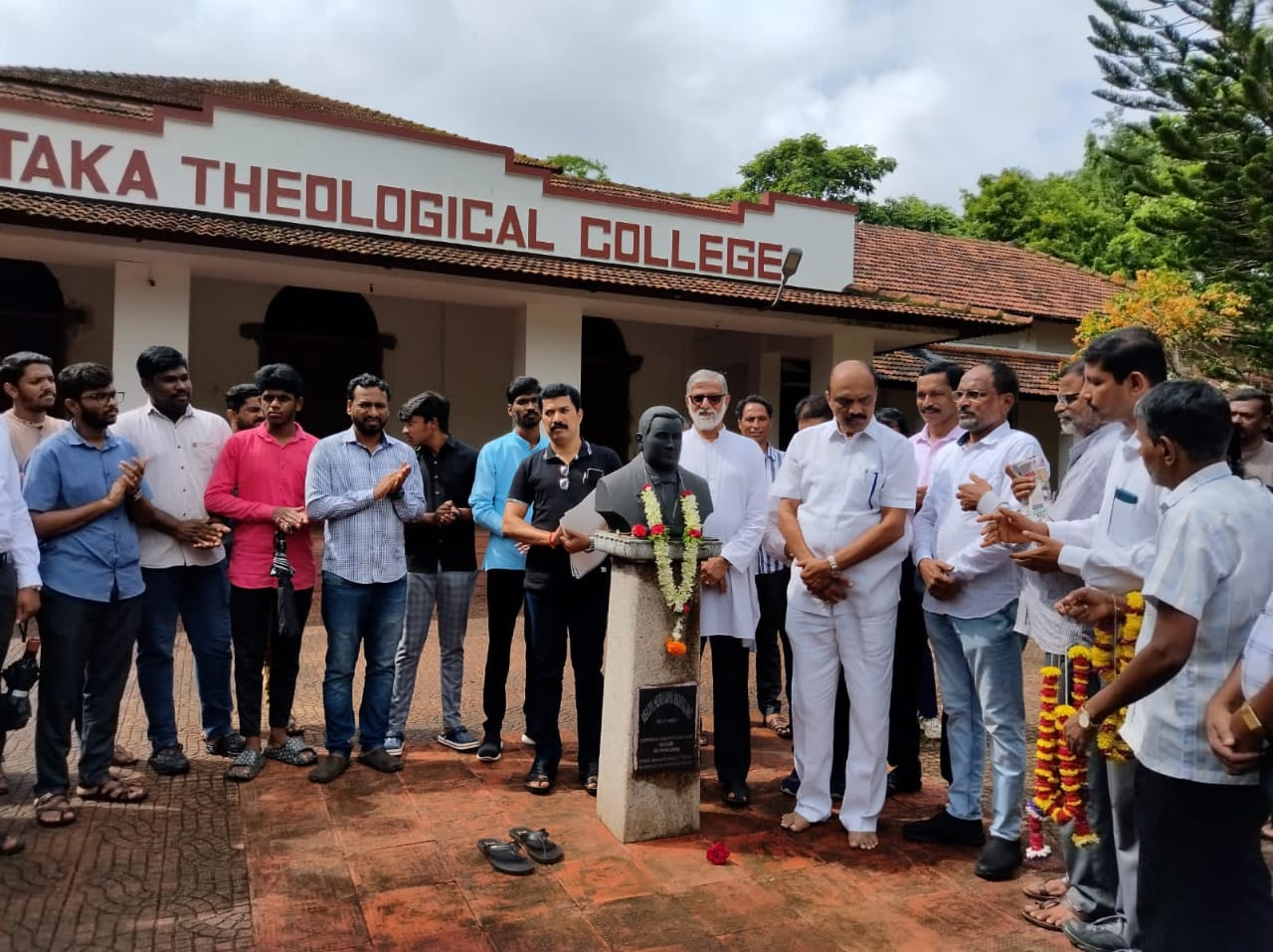 Karnataka Journalists Union, Dakishina Kannada observed Press day in remembrance of Rev Dr Hermann Moegling at the Karnataka Theological College, Balmatta Mangalore by garlanding the statue of Moegling in the campus of the Karnataka Theological College. Rev Dr Hermann Morgling, the founding principal of the Karnataka Theological College is called as the father of journalism in South India. In Karnataka, press day is observed on July 1st, in memory of Rev Dr Hermann Moegling who published the first Kannada daily 'Mangaluru Samachaara,' 180 years ago on 1 st July 1843. Mr Tharnath Gatti Kapikad, secretary Dakhina Kannada, Karnataka Journalist's Union, welcomed the gathering and highlighted the importance of the day. Chief Guest, Shri Harish Kumar, Member of Legislative Council, Government of Karnataka, spoke on importance on press freedom and it's role as the fourth pillar of the democracy. Rev Dr H M Watson, Principal Karnataka Theological College, highlighted the contribution of Dr Moegling to Church and Society. Sports Correspondent Shri Jagadeshchandra Ancha and Eedhina.com co-ordinator Umar U. H, were the guests of honour. Mr Tharnath Gatti delivered the vote of thanks.