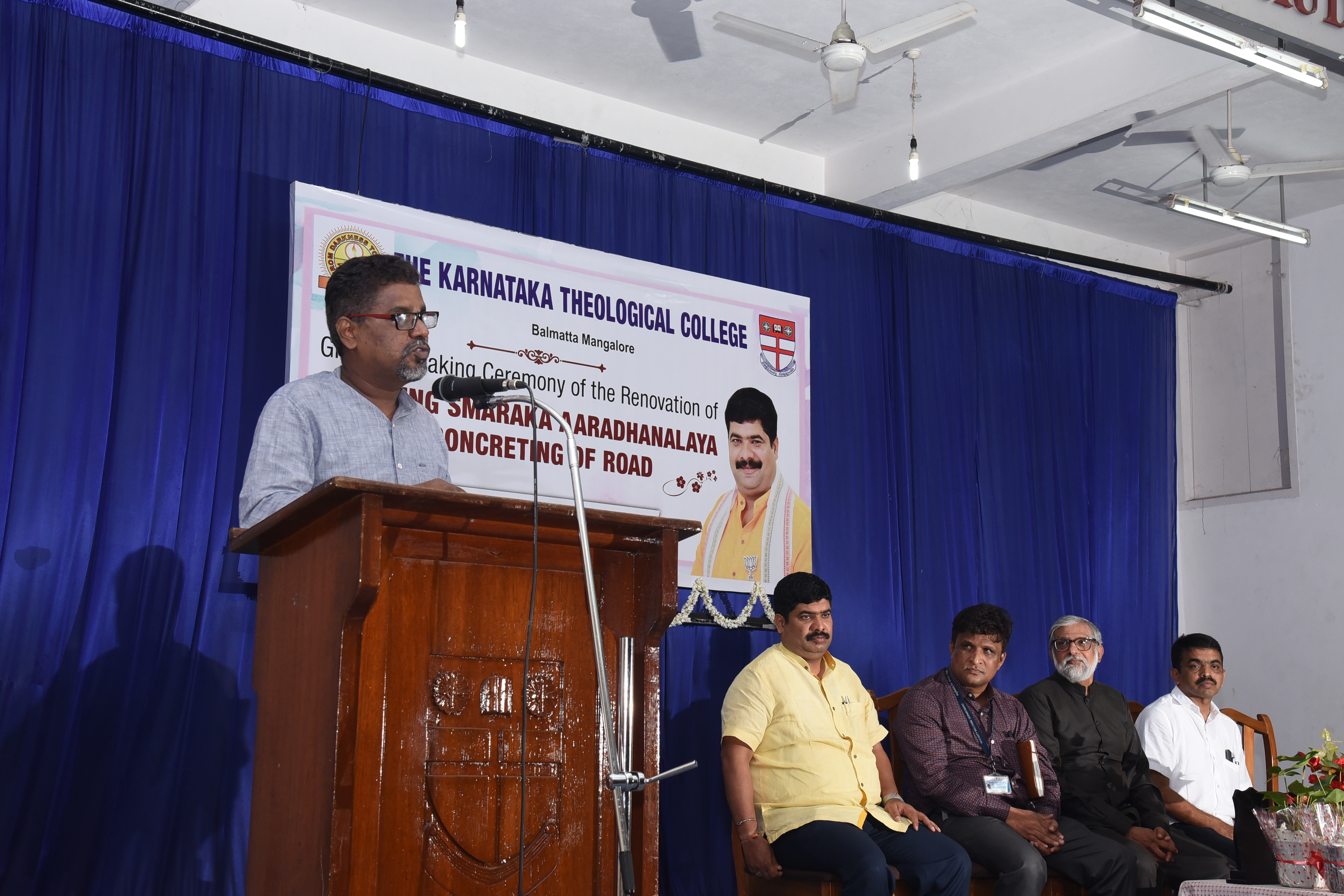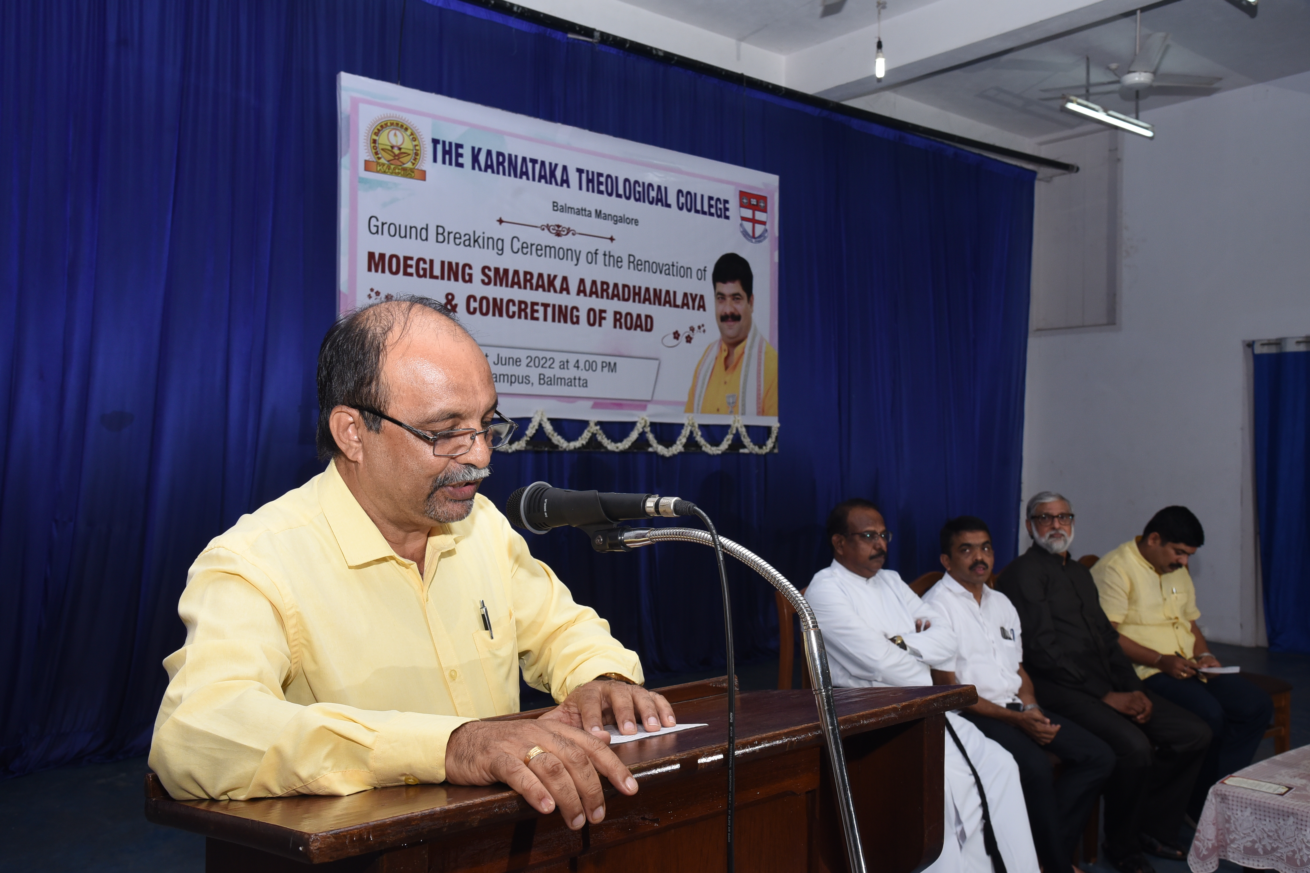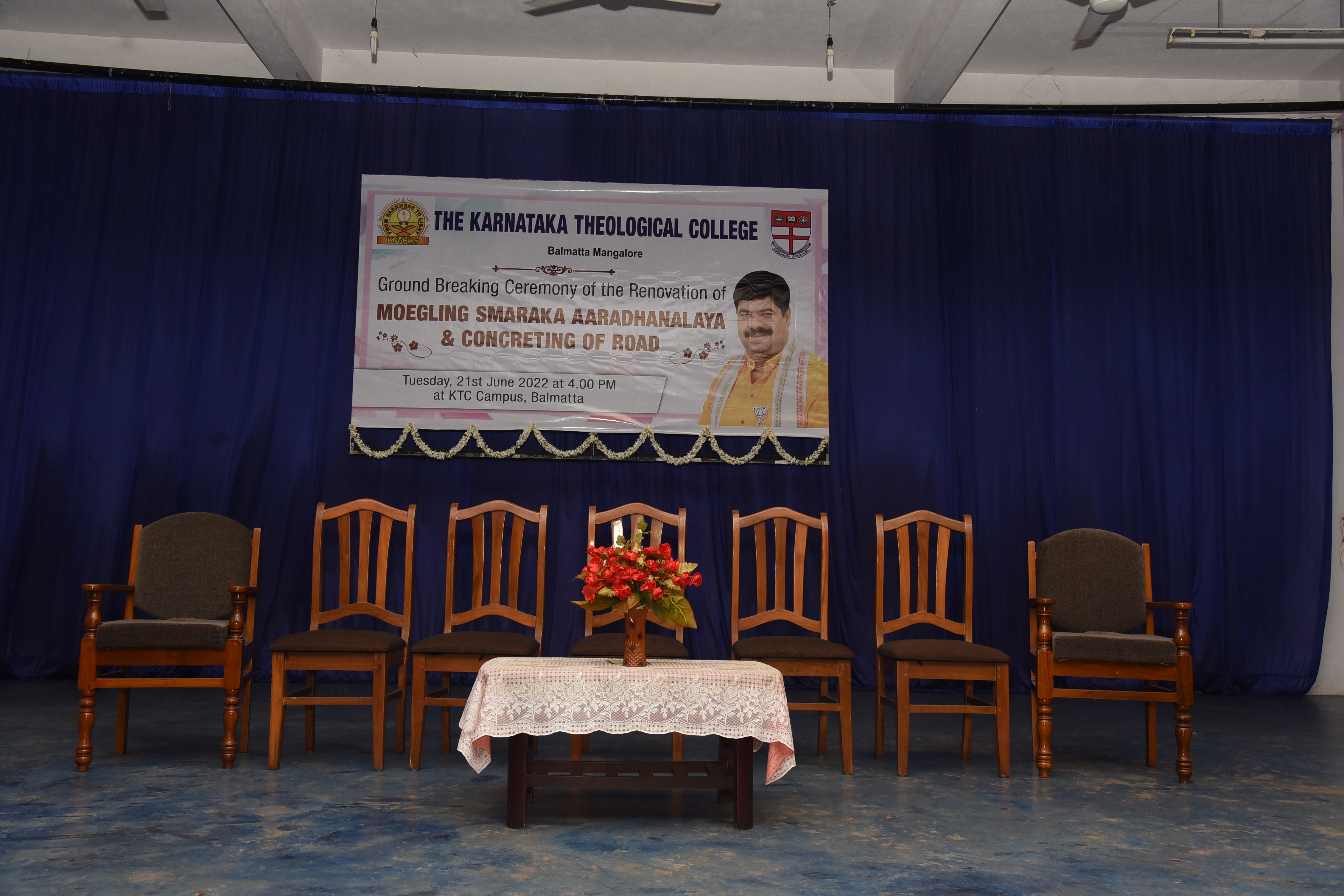 The Ground Breaking Ceremony of the Renovation of Moegling Smaraka Aaradhanalaya and the Concreting of Road was held on Tuesday, 21st June 2022. SrI D. Vedavyas Kamat, Honourable MLA, Mangalore City South Constituency was the Chief Guest. Mr. Premananda Shetty, Honourable Mayer, Mangalore City Corporation, Mr. Naveen D Souza, Corporator, Bendur Ward, Mr. Anjanappa S. Distric Officer, Minority Welfare Department, DK, Mr. Manjunath R. Miority Extension Officer, DK, and Rev. M. Prabhuraj, Area Chairman, DK were the Guests of Honour. Rev. Dr. Hubert M. Watson, Principal, KTC/Secretary, KACES presided over the function.