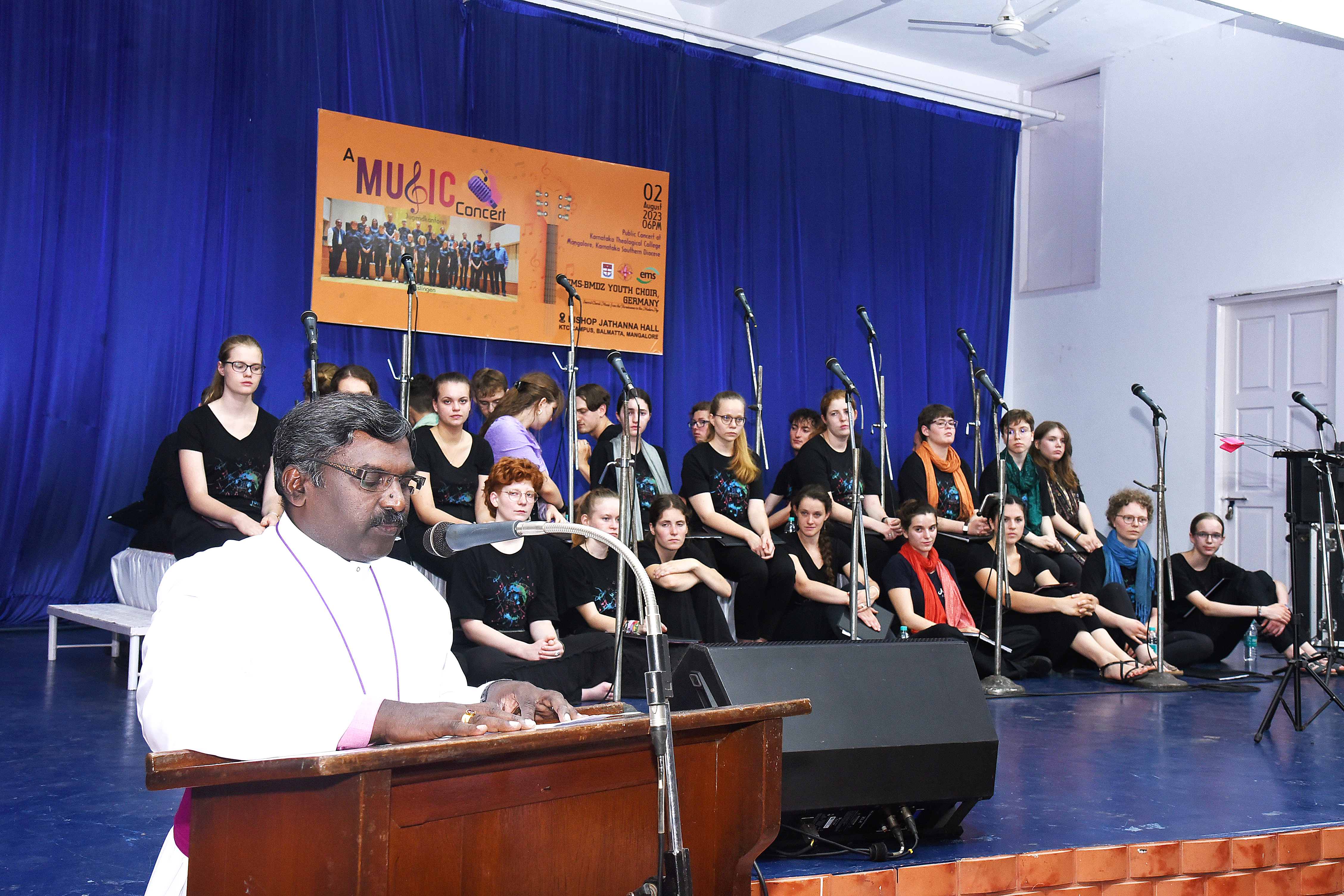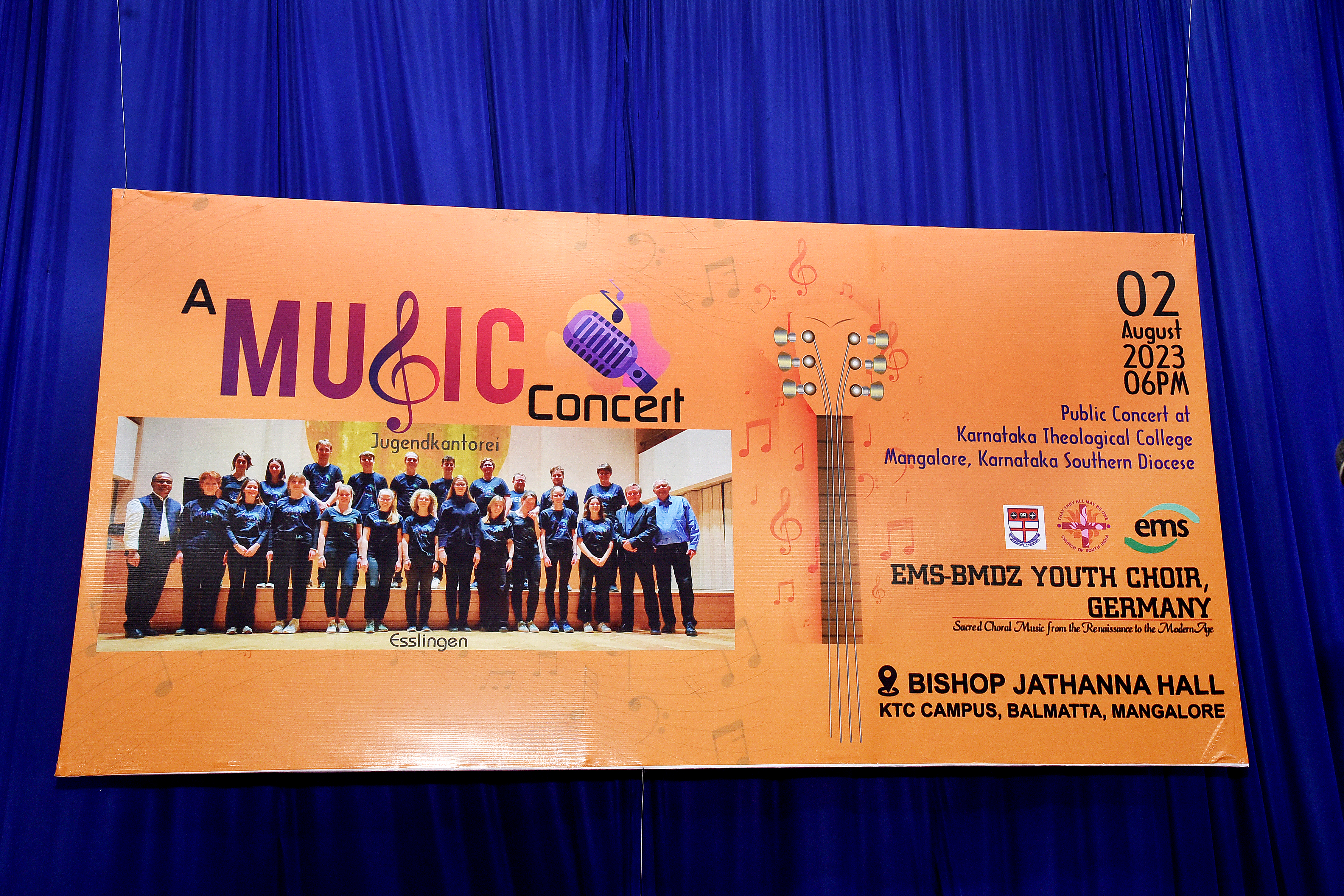 The concert began with a prayer led by Rev M Praburaj, presbyter CSI Shanthi Cathedral. Rev. Dr F Anil Kumar, treasurer KTC welcomed the gathering. Rev. Dr Solomon Benjamin EMS liaison officer for East Asia Mission, led the youth team introduced the choir group. The concert was directed by a well known director Mr. Uwe Schüssler. The President of the German part of Basel Mission Rev. Dieter Bullard Werner and his wife Rev. Nancy Bullard Werner had accompanied the group. The youth group from Esslingen sang classical concerts and contemporary songs which included compositions of Johan Sebastian Bach, Dietrich Buxtehude, Felix Mendelssohn Bartholdy and others. Rev. Dr J B Saldhana, PRO of the Roman Catholic Mangalore Diocese and the Parish Priest St. Francis Xavier Church, Bejai and Rt Rev. Hemachandra Kumar, Bishop CSI-KSD shared greetings on this occasion. Rev. Dr H M Watson delivered his presidential address. Christian Music lovers from all denominations from Mangalore and Udupi districts attended the programme and gave a thunderous standing ovation to the incredibly talented youth choir. The programme was compered by Rev. Dr Sandeep Theophil.