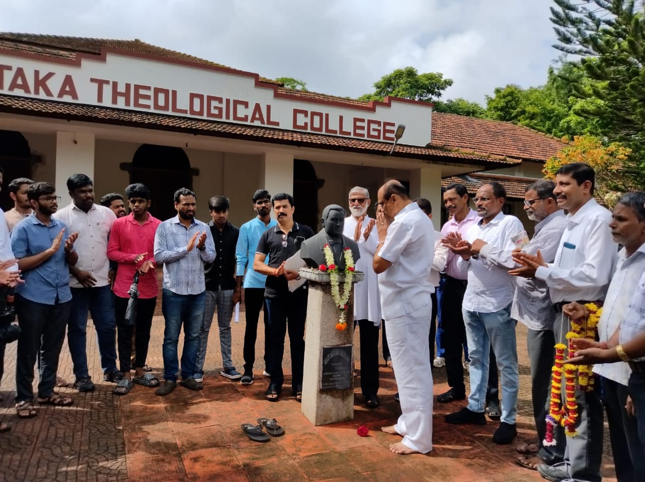 Karnataka Journalists Union, Dakishina Kannada observed Press day in remembrance of Rev Dr Hermann Moegling at the Karnataka Theological College, Balmatta Mangalore by garlanding the statue of Moegling in the campus of the Karnataka Theological College. Rev Dr Hermann Morgling, the founding principal of the Karnataka Theological College is called as the father of journalism in South India. In Karnataka, press day is observed on July 1st, in memory of Rev Dr Hermann Moegling who published the first Kannada daily 'Mangaluru Samachaara,' 180 years ago on 1 st July 1843. Mr Tharnath Gatti Kapikad, secretary Dakhina Kannada, Karnataka Journalist's Union, welcomed the gathering and highlighted the importance of the day. Chief Guest, Shri Harish Kumar, Member of Legislative Council, Government of Karnataka, spoke on importance on press freedom and it's role as the fourth pillar of the democracy. Rev Dr H M Watson, Principal Karnataka Theological College, highlighted the contribution of Dr Moegling to Church and Society. Sports Correspondent Shri Jagadeshchandra Ancha and Eedhina.com co-ordinator Umar U. H, were the guests of honour. Mr Tharnath Gatti delivered the vote of thanks.