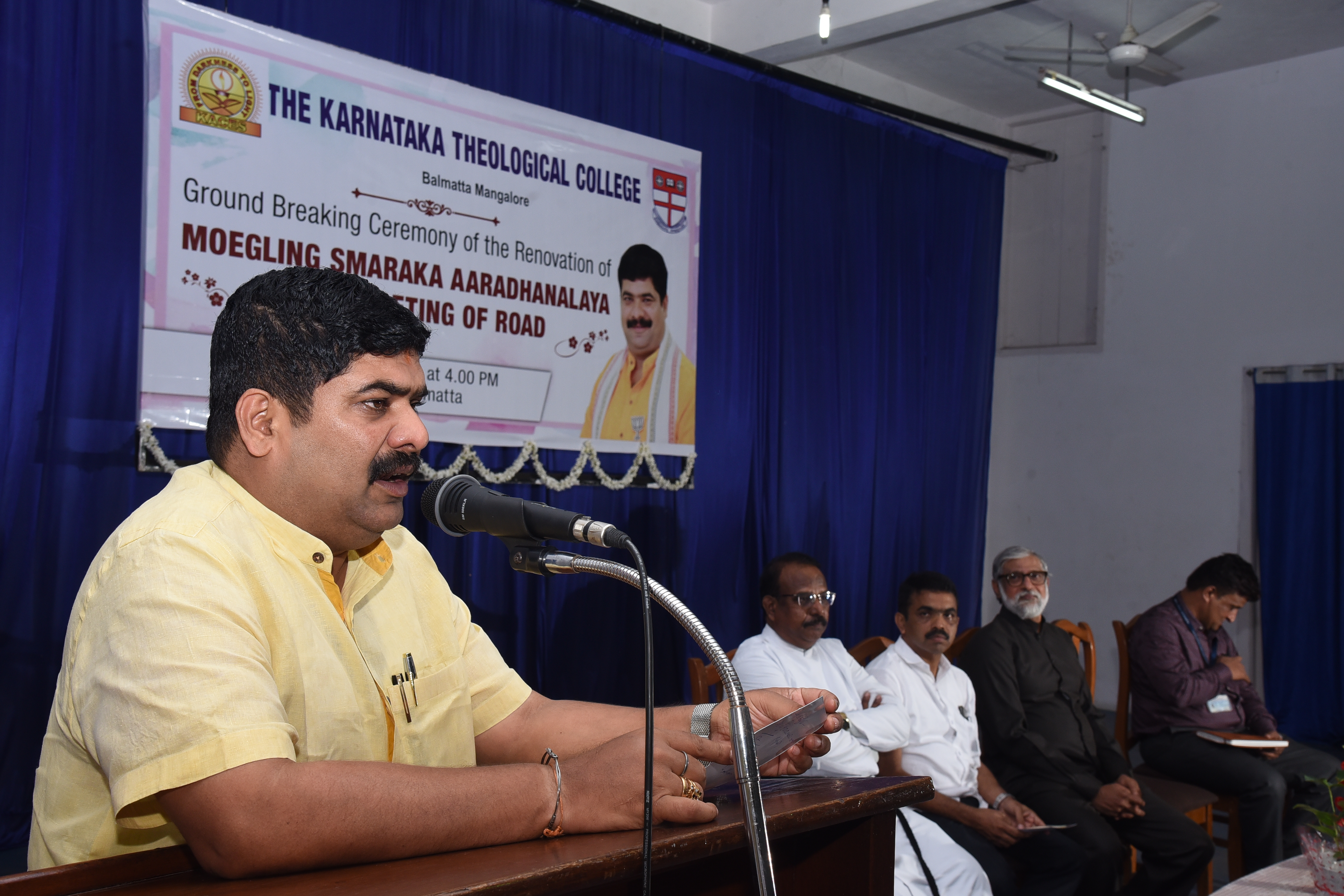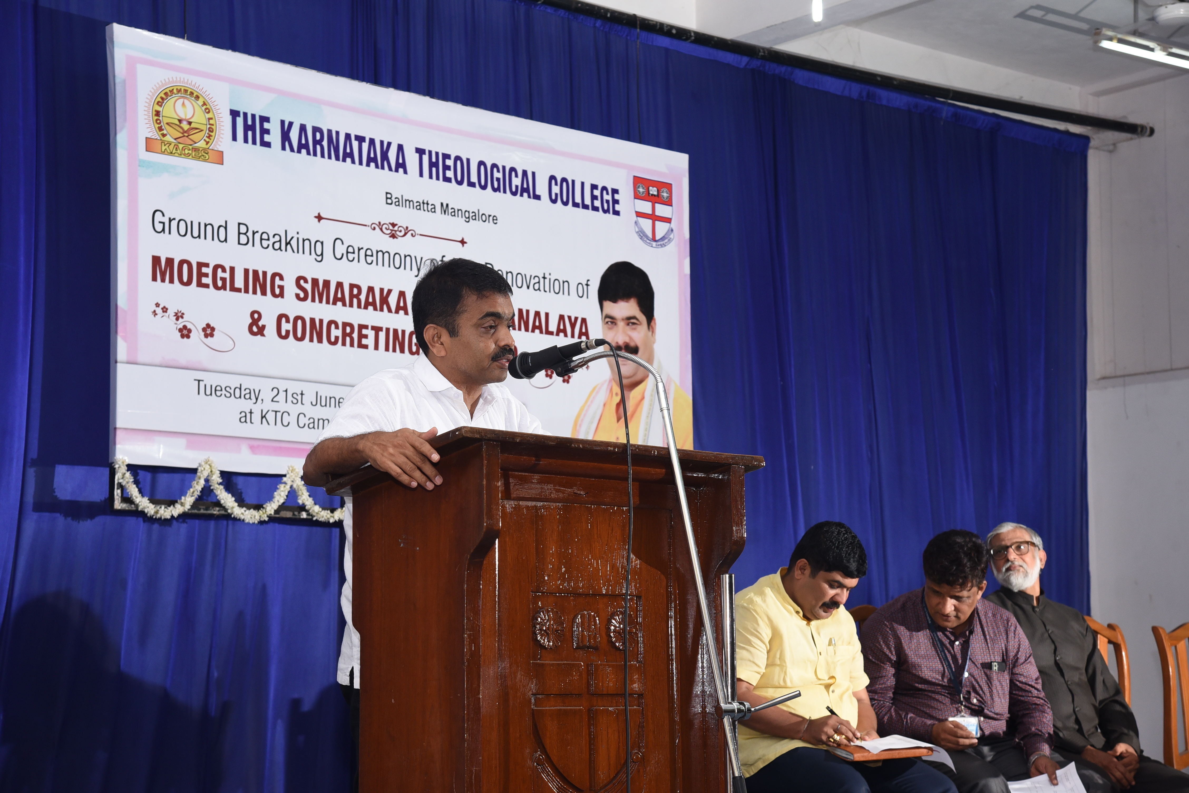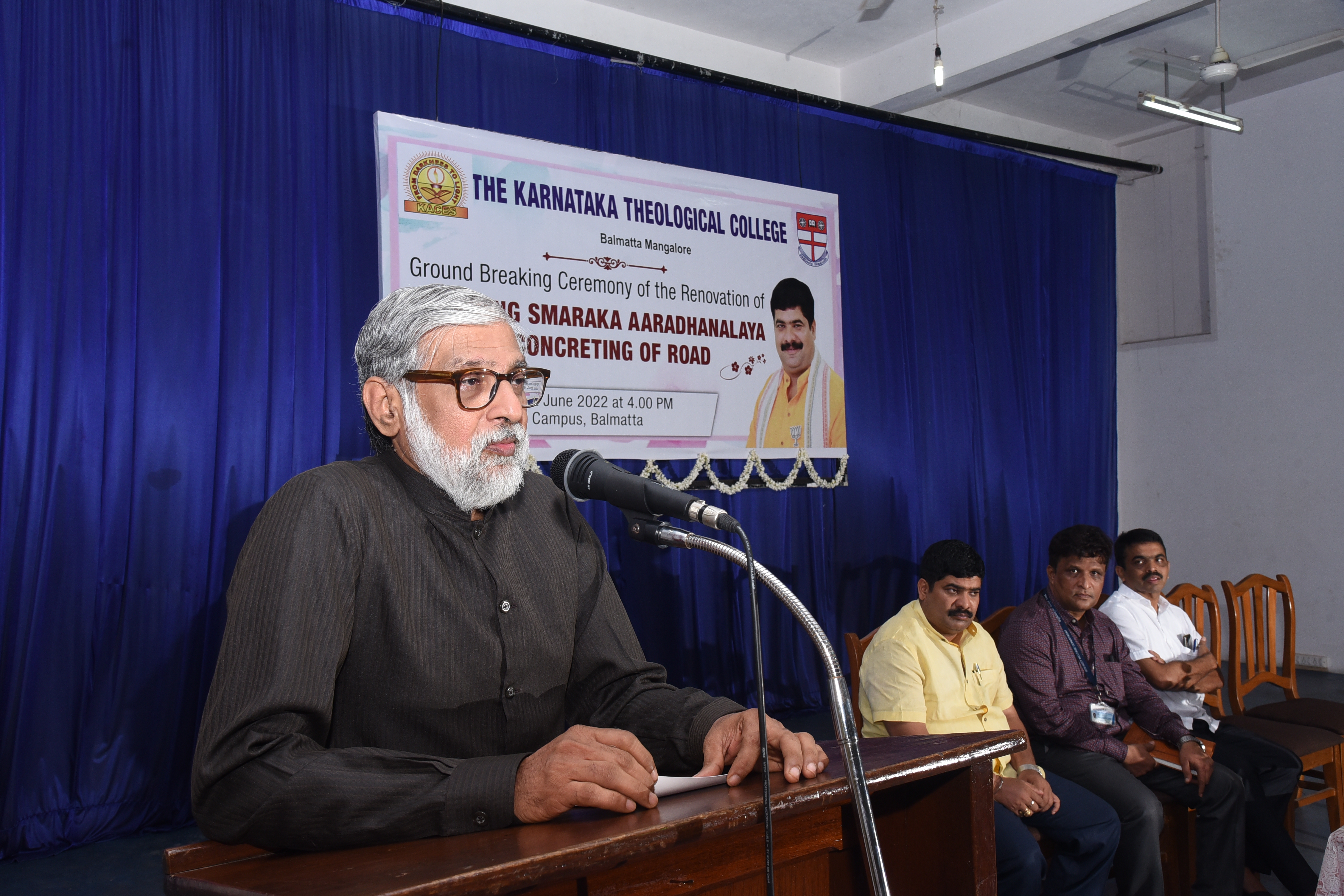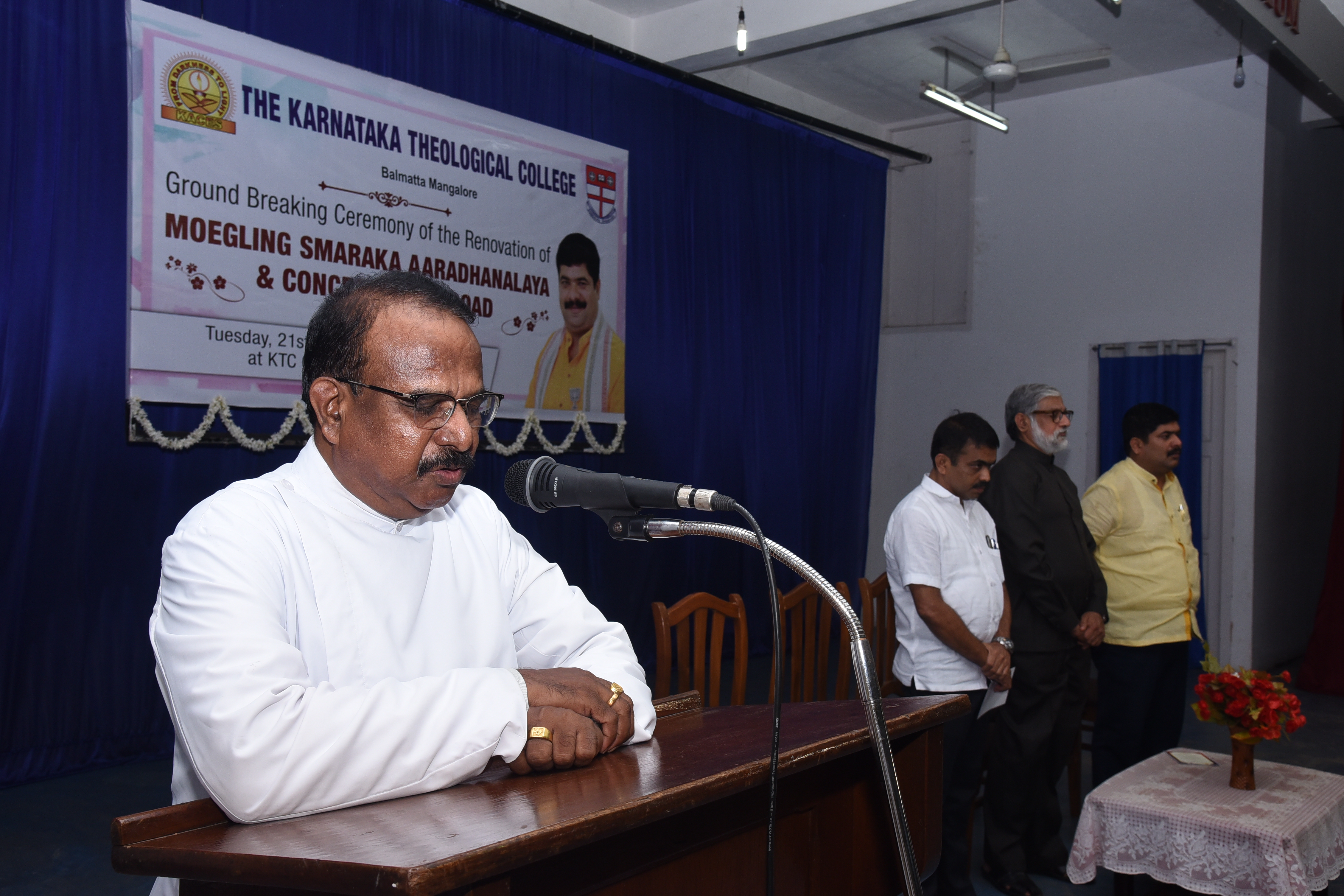 The Ground Breaking Ceremony of the Renovation of Moegling Smaraka Aaradhanalaya and the Concreting of Road was held on Tuesday, 21st June 2022. SrI D. Vedavyas Kamat, Honourable MLA, Mangalore City South Constituency was the Chief Guest. Mr. Premananda Shetty, Honourable Mayer, Mangalore City Corporation, Mr. Naveen D Souza, Corporator, Bendur Ward, Mr. Anjanappa S. Distric Officer, Minority Welfare Department, DK, Mr. Manjunath R. Miority Extension Officer, DK, and Rev. M. Prabhuraj, Area Chairman, DK were the Guests of Honour. Rev. Dr. Hubert M. Watson, Principal, KTC/Secretary, KACES presided over the function.